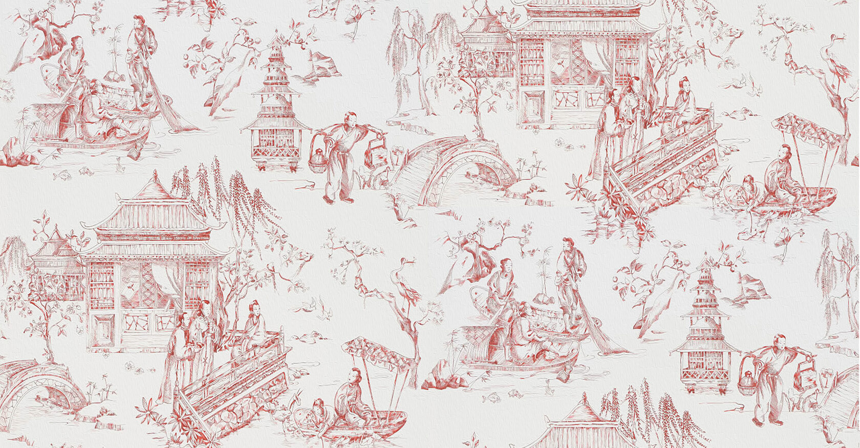 Этот дизайн, созданный по образцу Туаль-де-Жуи, представляет собой китайскую серию, сцены из повседневной жизни на берегу реки.